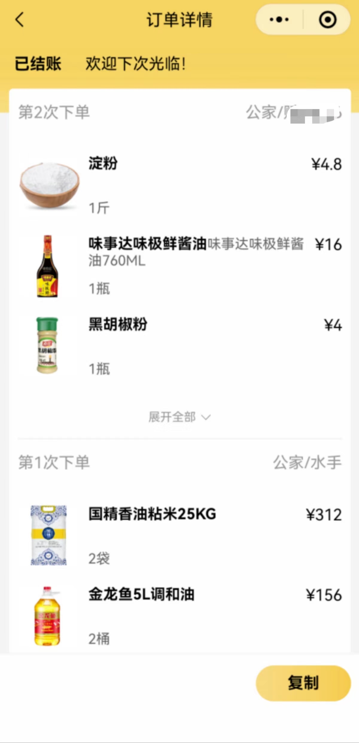提供两种身份登录,可切换。在同一船名下支持多人点单。无须支付,在配送后手动结算。结算后的订单提供复制功能,方便用户下次点单。